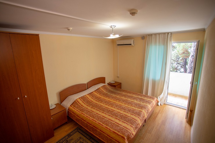 2 осн. места. Балкон. Мебель: вешалка, зеркало, кровати односпальные /одна двуспальная кровать, прикроватные тумбочки, шкаф. Оборудование: кондиционер, телевизор, холодильник. Санузел. Сервис: смена полотенец, смена постельного белья, уборка номера.