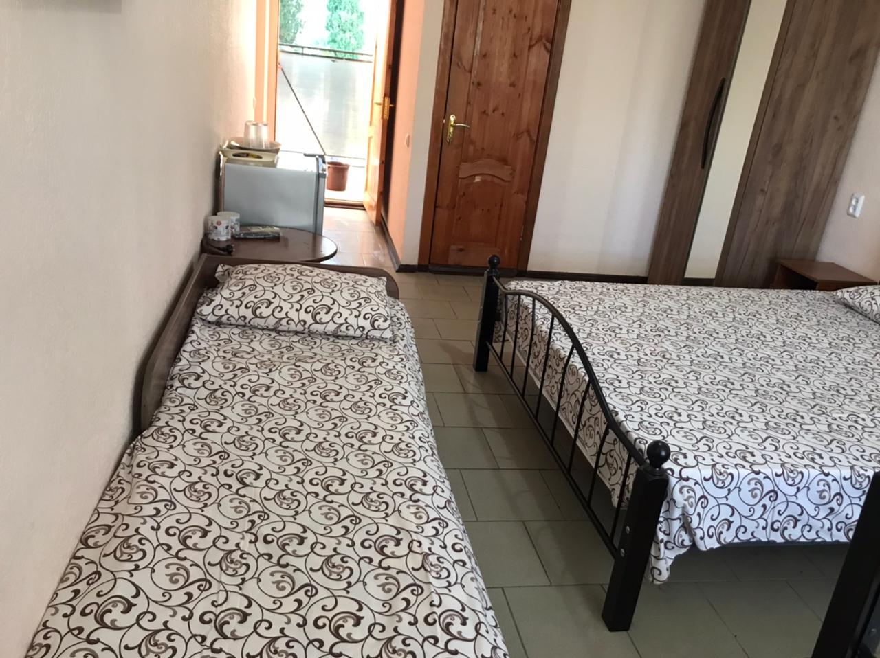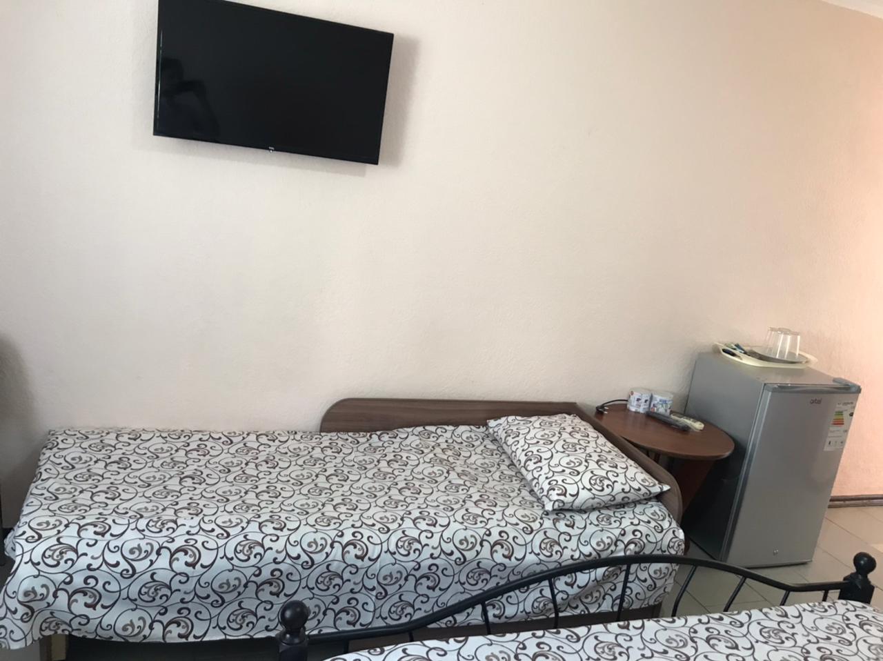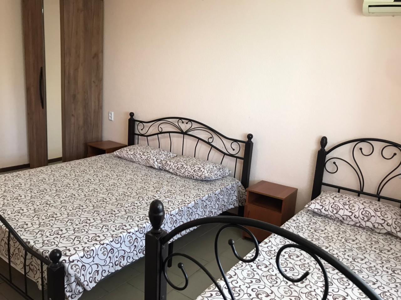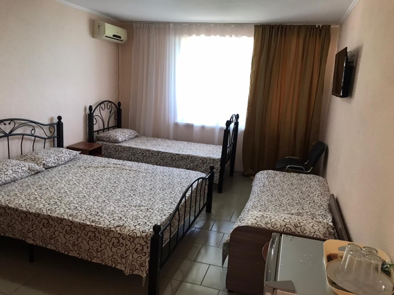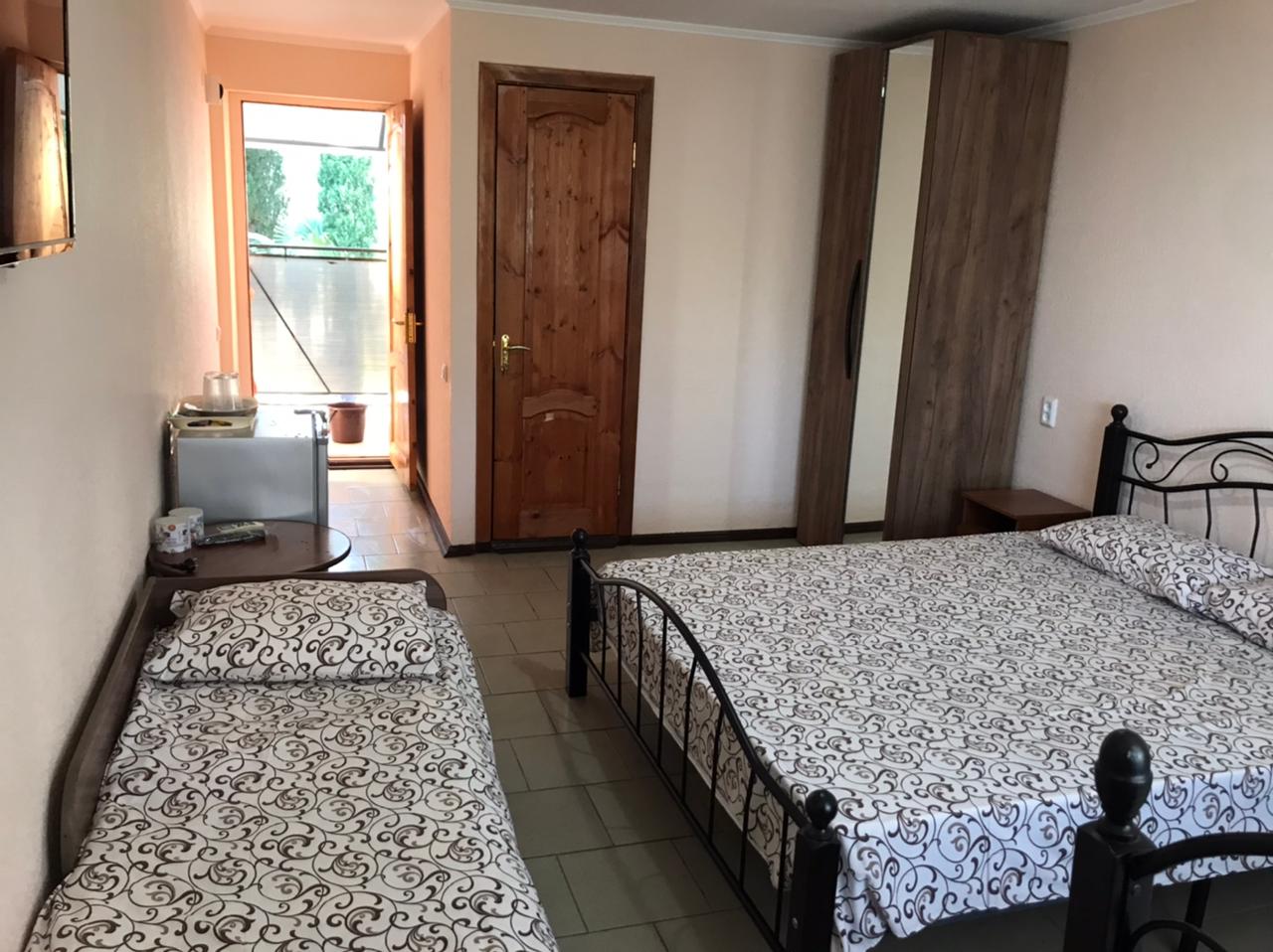 4 осн. места. Балкон. Мебель: вешалка, зеркало, кровати односпальные (2), кровать двуспальная, прикроватные тумбочки, столик журнальный, шкаф. Оборудование: кондиционер, телевизор, холодильник. Санузел. Сервис: смена полотенец, смена постельного белья, уборка номера.